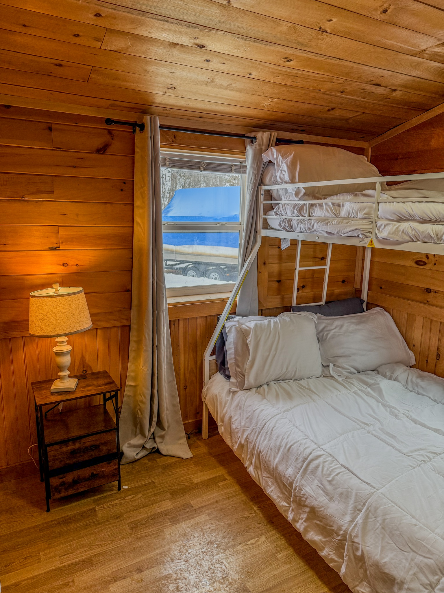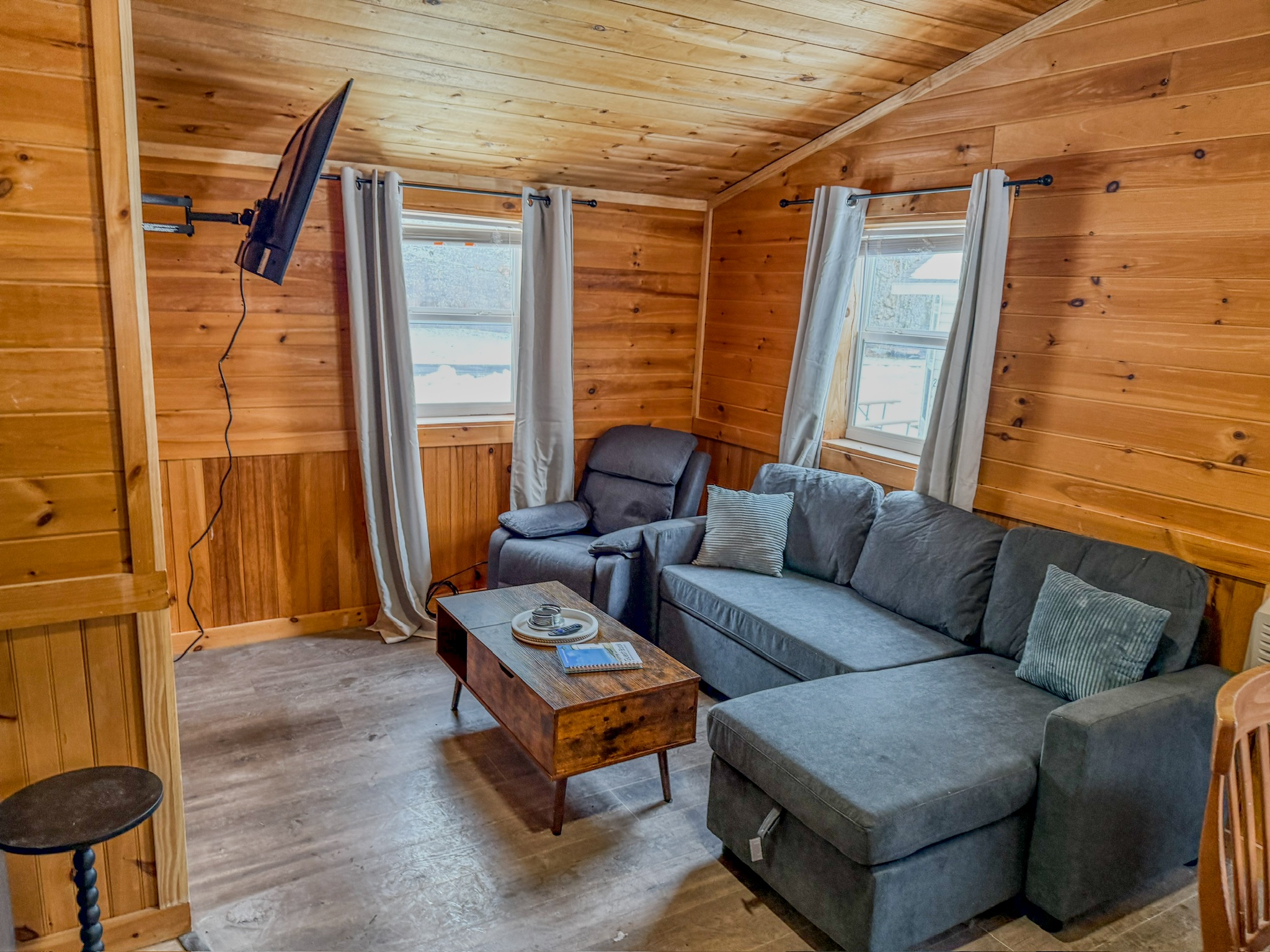 📸 Photos: Photos may not reflect the latest improvements, but updated photos will be added once renovations are complete. All descriptions represent the updated features. 🌦️Seasonal Cabin Pine and Paddle is currently a seasonal cabin and is available from May 1 through September 30. We plan to open the cabin year-round in the future, so please check back for updates. 🛏️ Sleeping Arrangements: This cabin accommodates up to 7 guests and includes a bedroom with a queen bed and a bedroom with a twin-over-full bunk with a twin trundle. This cabin also includes a full sized pullout couch. 🏡 Located on a Campground Pine and Paddle is located within Back Bay Campground and offers a private setting with access to shared campground amenities. Some amenities and rentals may be seasonal or weather dependent. 🐾 Pets Please contact us prior to booking if you plan to bring a pet. Restrictions and additional cleaning fees may apply.