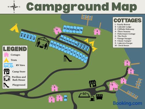 📸 Photos: Photos may not reflect the latest improvements, but updated photos will be added once renovations are complete. All descriptions represent the updated features. 🌦️Seasonal Cabin Lakeside Lodge is currently a seasonal cabin and is available from May 1 through September 30. We plan to open the cabin year-round in the future, so please check back for updates. ♿ Accessibility Overviews: The cabin has three entrances, one having a handicap-accessible ramp leading to the side door and first floor living area. Both bathrooms include handicap-accessible elements and grab bars. Please note the basement and dock is not wheelchair accessible. 🛏️ Sleeping Arrangements: This cabin accommodates up to 12 guests and includes two bedrooms with a queen bed each and one bedroom with a twin bunk. The living room has a full sized sofa bed while the basement also features two full sized sofa beds for additional sleeping space. 🏡 Located on a Campground Lakeside Lodge is located within Back Bay Campground and offers a private setting with access to shared campground amenities. Some amenities and rentals may be seasonal or weather dependent. 🌊 Dock Access Guests can head down their stairs to a private dock for fishing, swimming, or kayaking. Dock access and water conditions may vary depending on season and weather. 🐾 Pets Please contact us prior to booking if you plan to bring a pet. Restrictions and additional cleaning fees may apply.