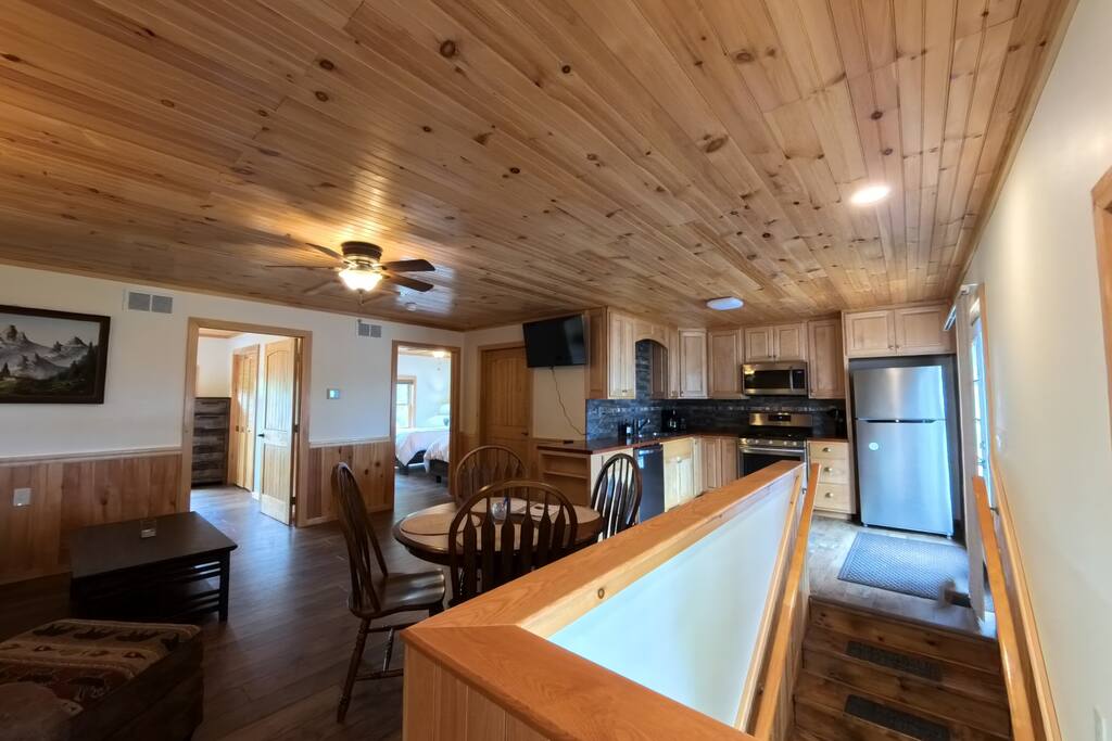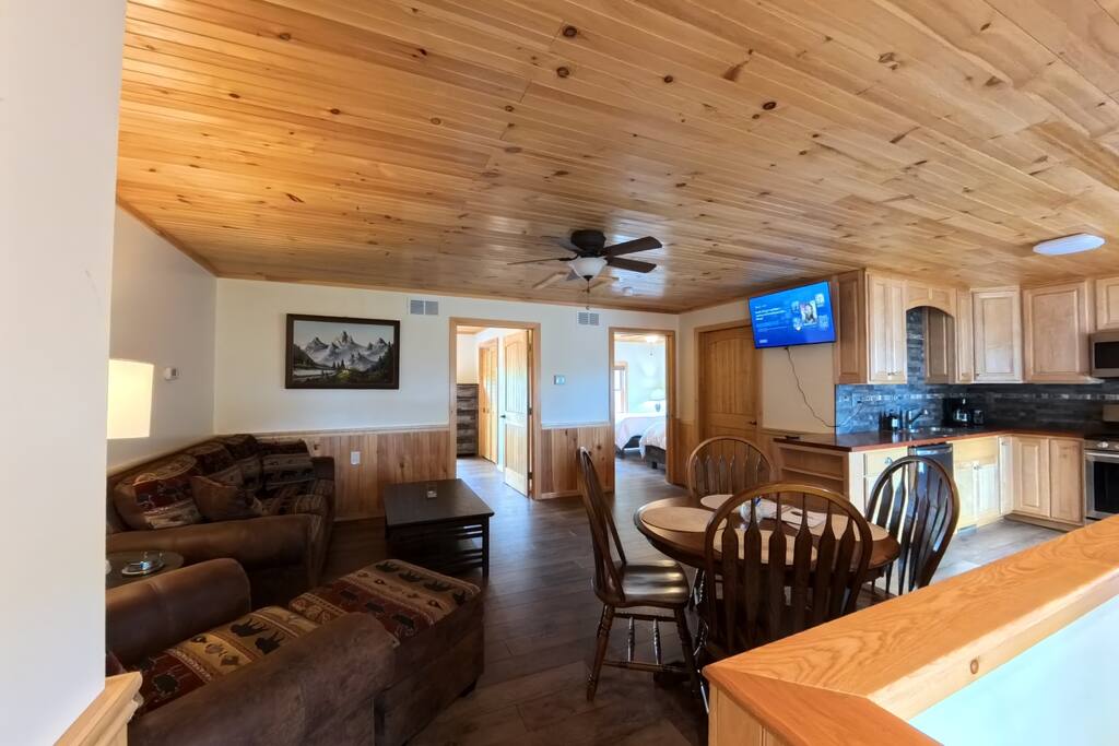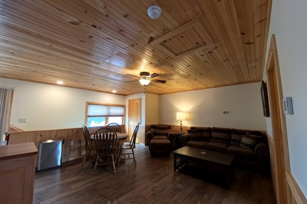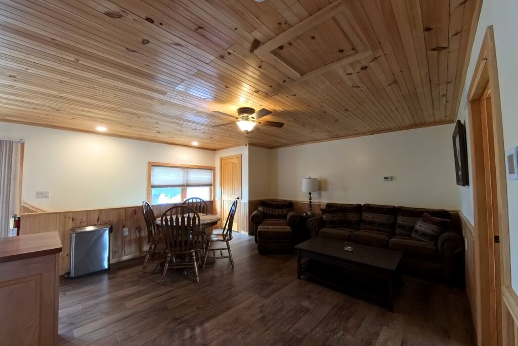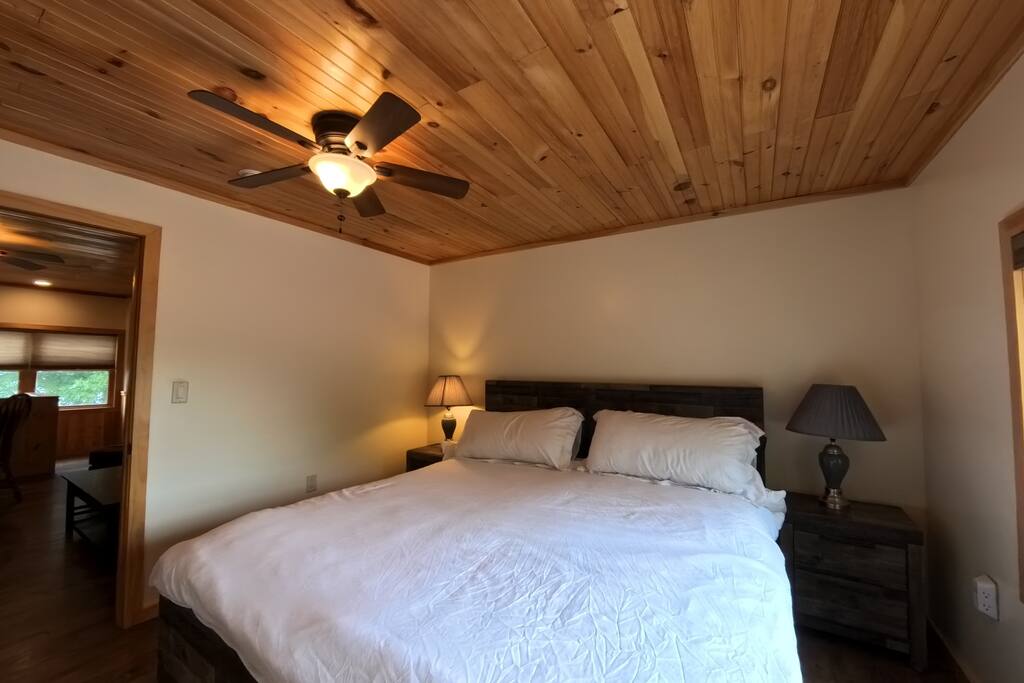 The Modern Lakeview Escape is a newly renovated 2-bedroom, 1-bath apartment with stunning views of Black Lake. Perfect for up to 5 guests, it has a sleek kitchen, cozy bedrooms, and a spacious living area. Relax on the dock, or rent pontoons, kayaks, paddle boats, and lawn games from the camp store. With a pool, arcade, and trails, this stylish lakeside retreat has everything you need for a relaxing getaway!