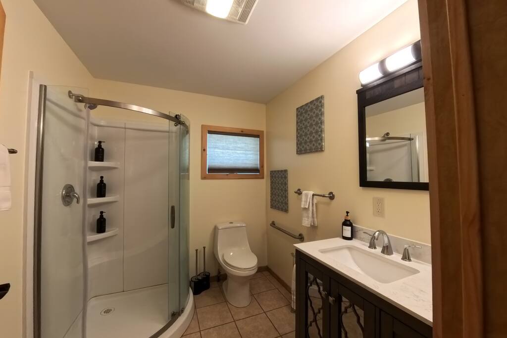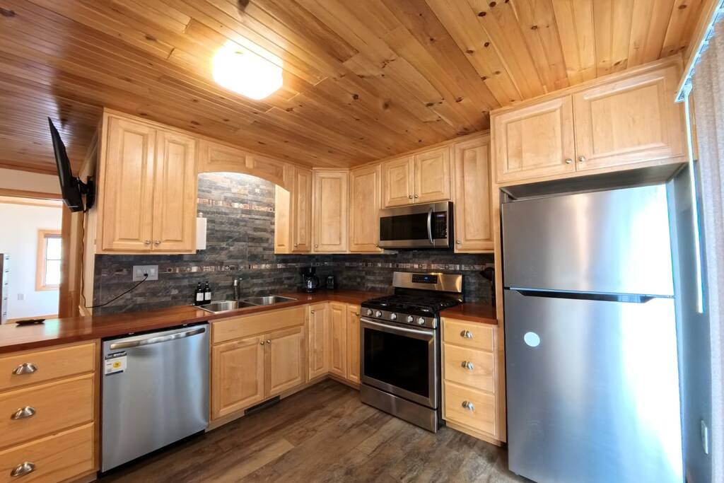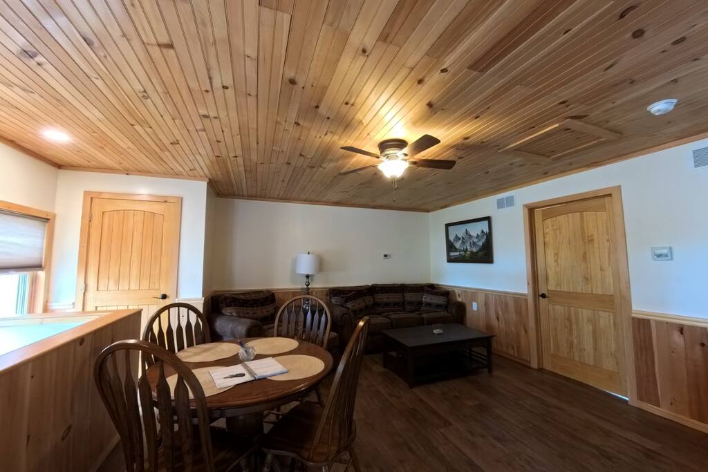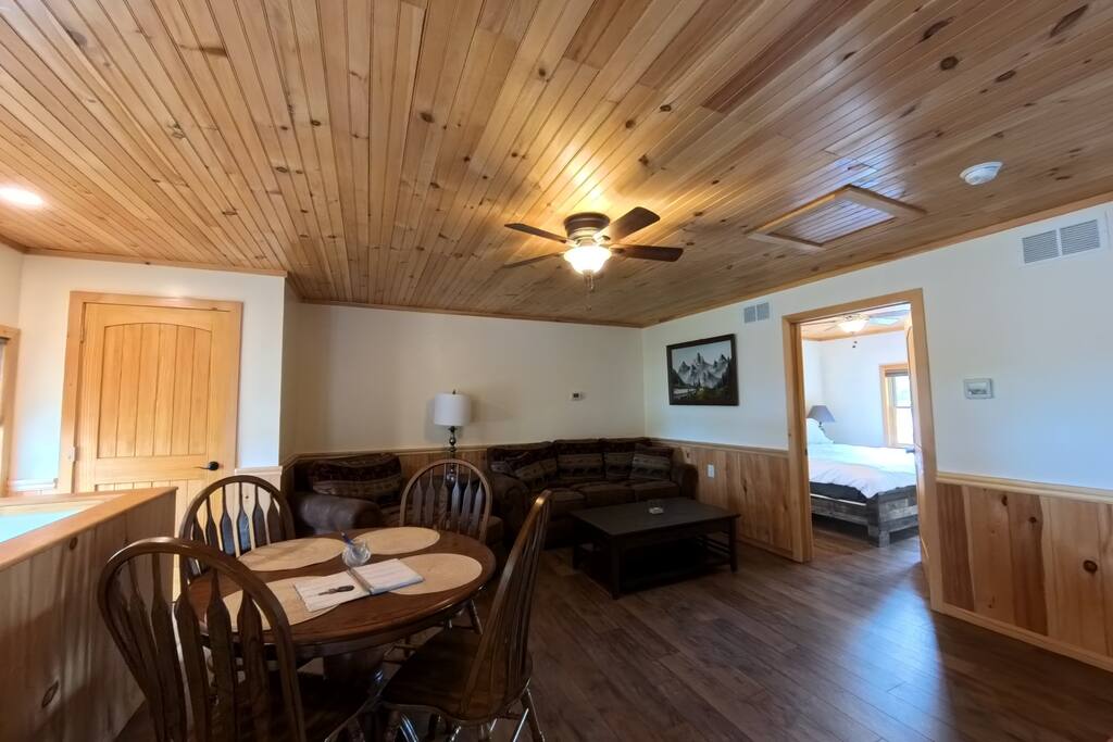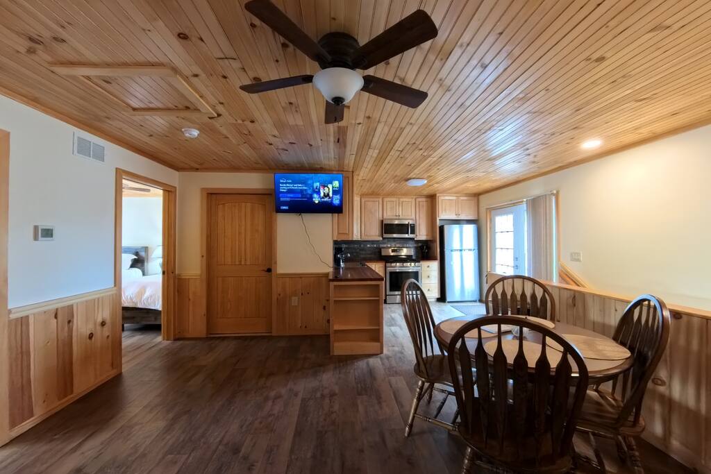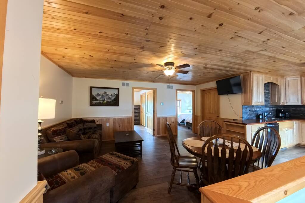 The Modern Lakeview Escape is a newly renovated 2-bedroom, 1-bath apartment with stunning views of Black Lake. Perfect for up to 5 guests, it has a sleek kitchen, cozy bedrooms, and a spacious living area. Relax on the dock, or rent pontoons, kayaks, paddle boats, and lawn games from the camp store. With a pool, arcade, and trails, this stylish lakeside retreat has everything you need for a relaxing getaway!